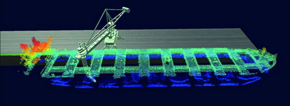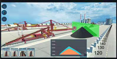 該系統(tǒng)具備船型掃描實(shí)時(shí)成像、多種船型定位識別、艙內(nèi)取料智能決策、三維可視化場景還原等功能,相比其他散貨船型識別算法通用性更強(qiáng),基于設(shè)備運(yùn)動(dòng)學(xué)模型、有限元模型,構(gòu)建了融合幾十種取料工藝策略的決策分析系統(tǒng),形成多目標(biāo)優(yōu)化后的取料工藝策略,艙內(nèi)智能化取料覆蓋率可達(dá)80%以上。另外,VR仿真平臺可實(shí)現(xiàn)工藝虛擬仿真,大幅減少現(xiàn)場調(diào)試時(shí)間。