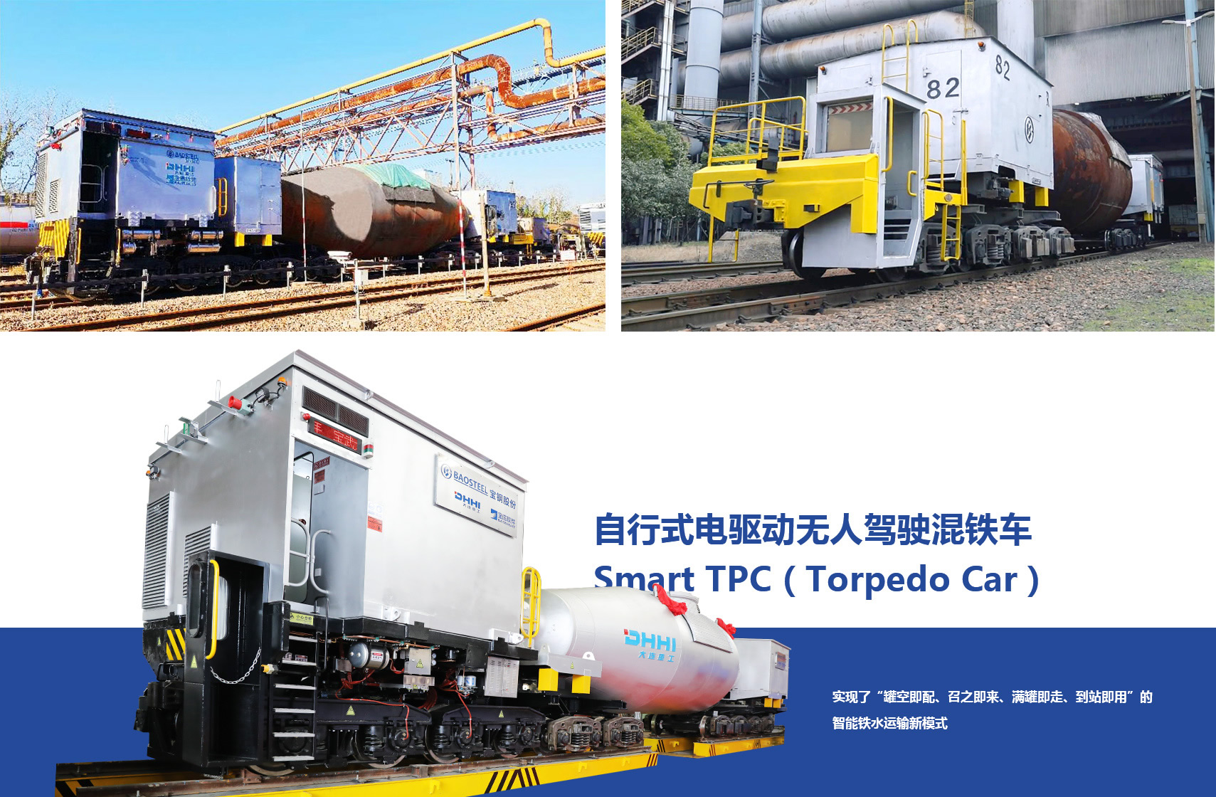 自行式電驅(qū)動無人駕駛混鐵車Smart TPC(Torpedo Car)是一種綠色、智能、高效的鐵水運輸設(shè)備,采用自動駕駛,純電力驅(qū)動,實現(xiàn)了“罐空即配、召之即來、滿罐即走、到站即用”的智能鐵水運輸新模式,可智能、綠色、高效地完成從高爐到煉鋼的鐵水運輸作業(yè)。