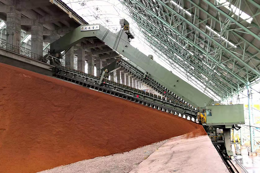 滾筒式混勻取料機(jī)適用于鋼廠、焦化廠、水泥廠和化工等企業(yè)的原料場,搬運(yùn)輸送礦石、煤、煤炭等散料,是大型高效率的混勻取料設(shè)備。該產(chǎn)品原理通過料耙在整個(gè)料堆斷面上橫向刮料,底部筒體漏斗水平進(jìn)尺取料轉(zhuǎn)運(yùn)到地面皮帶。具有混勻效果好,出料成分穩(wěn)定,作業(yè)效率高等特點(diǎn)。大連重工于1989年開始研制該類設(shè)備,取料能力范圍覆蓋800~2100t/h,軌距范圍30-40m。