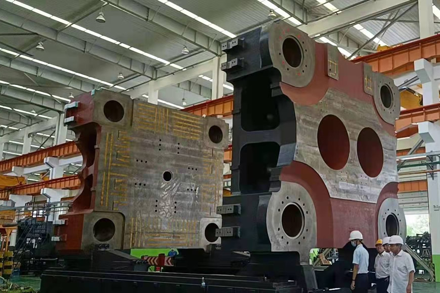 注塑機是利用塑料成型模具將熱塑性塑料或熱固性塑料制成各種形狀的塑料制品的成型設備,能滿足航空航天、工程機械等領域?qū)Τ笮椭破返男枨蟆4笮颓蚰T鐵模板是注塑機的關(guān)鍵部件。大連重工是國內(nèi)少數(shù)幾家能夠研制該類產(chǎn)品的企業(yè),產(chǎn)品型號涵蓋了244-8500噸鎖模力多種系列,成功為歐洲、北美及國內(nèi)客戶研制了6600噸級至8500噸級多型號注塑機模板,為我國大型注塑機產(chǎn)業(yè)發(fā)展提供了強有力的裝備技術(shù)支撐。